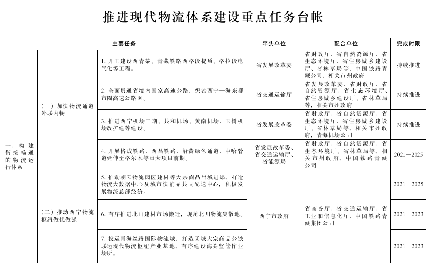 附件:推進現代物流體系建設重點任務臺帳